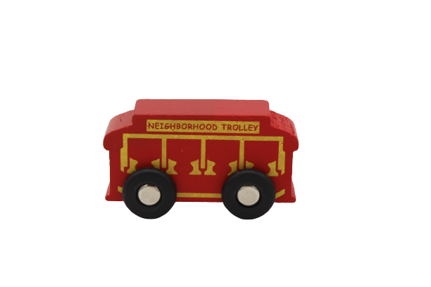 Your little one will love the Mister Rogers' Neighborhood Track Size Trolley. Designed for ages 3 years and older, this wooden trolley car fits standard wooden tracks and within the road of floor play mats. Links up to magnetic train sets through metal "headlights" at both ends. Measures 3" long x 1-1/4" wide x 2" high.