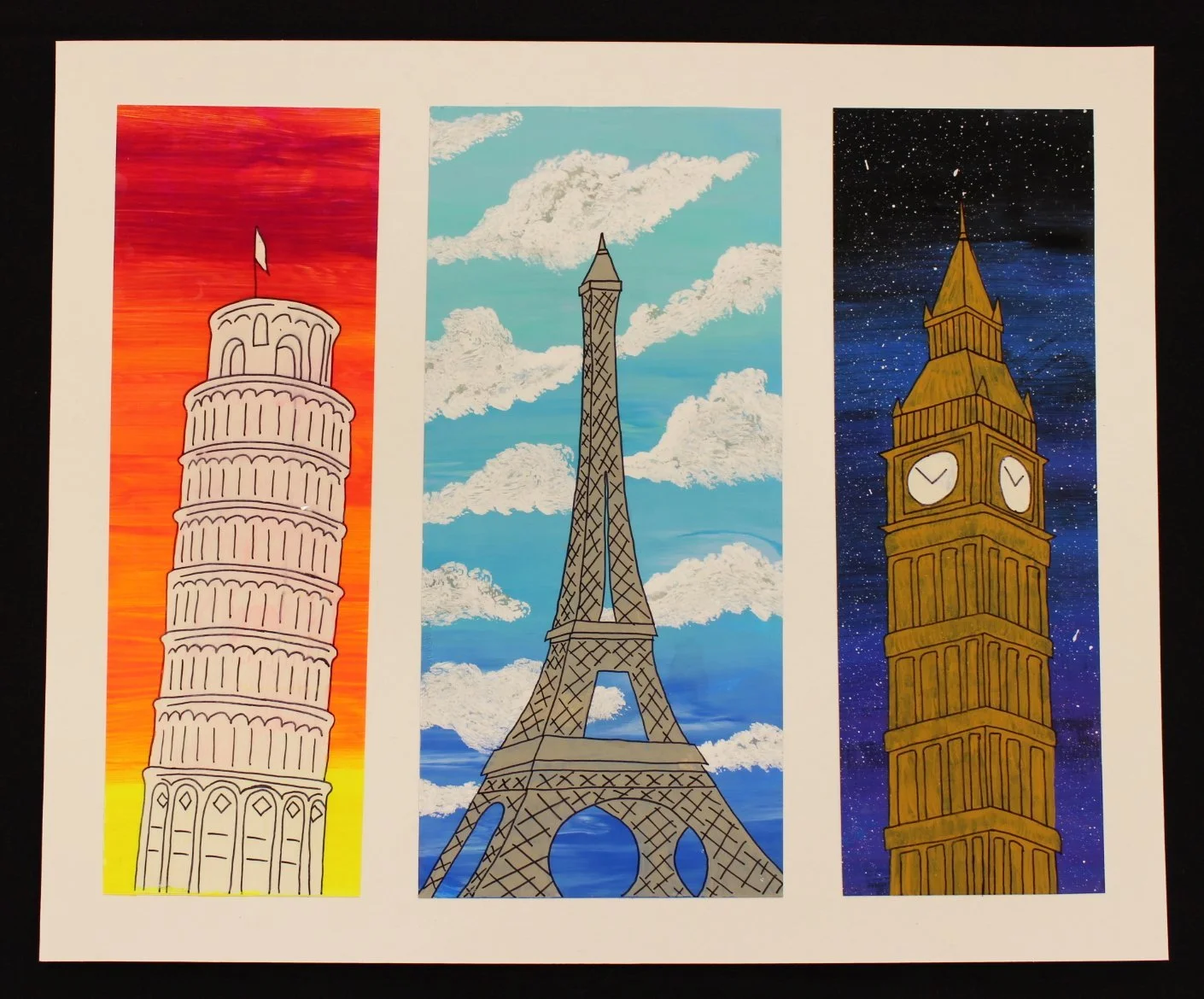 Young artists will travel the world through art while exploring famous buildings and landmarks from Europe and Asia. Campers will create artwork inspired by iconic structures such as the Eiffel Tower, Big Ben, the Leaning Tower of Pisa, the Taj Mahal, and traditional pagodas.